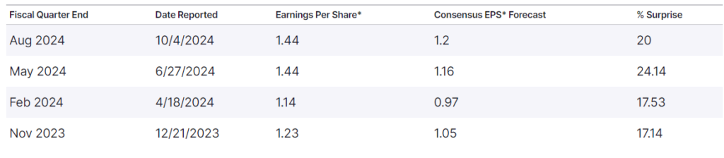 APOG had beat earnings multiple times and EPS improved quite a bit in the last 2 years. EPS now stands at USD 4.7, up from USD 2.3 in 2020.